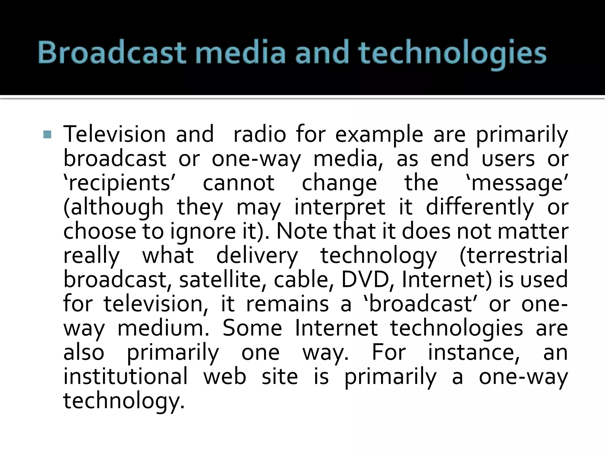 Broadcasting: Television, Radio and E-media | PPTX