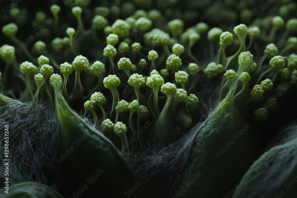 Microscopic view of broccoli florets and probiotic bacteria in ...