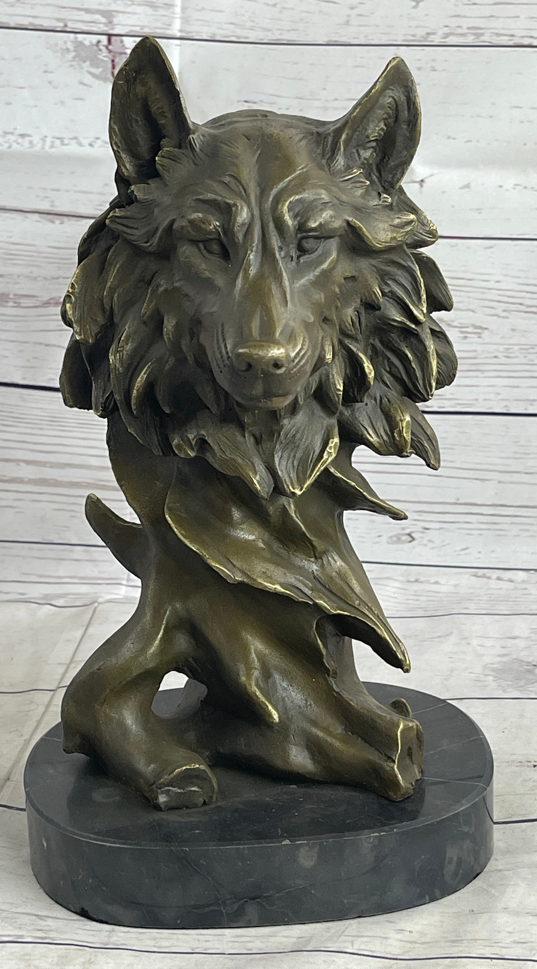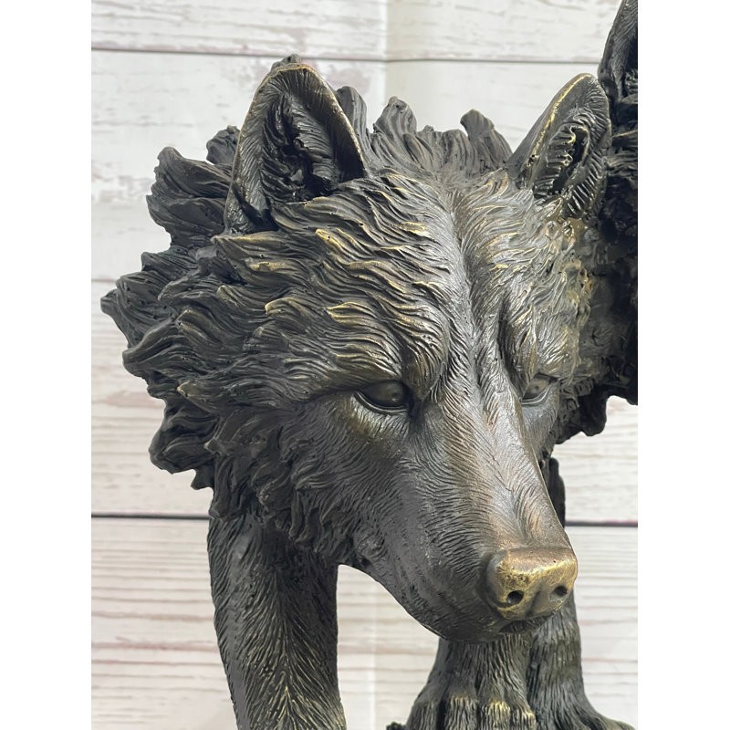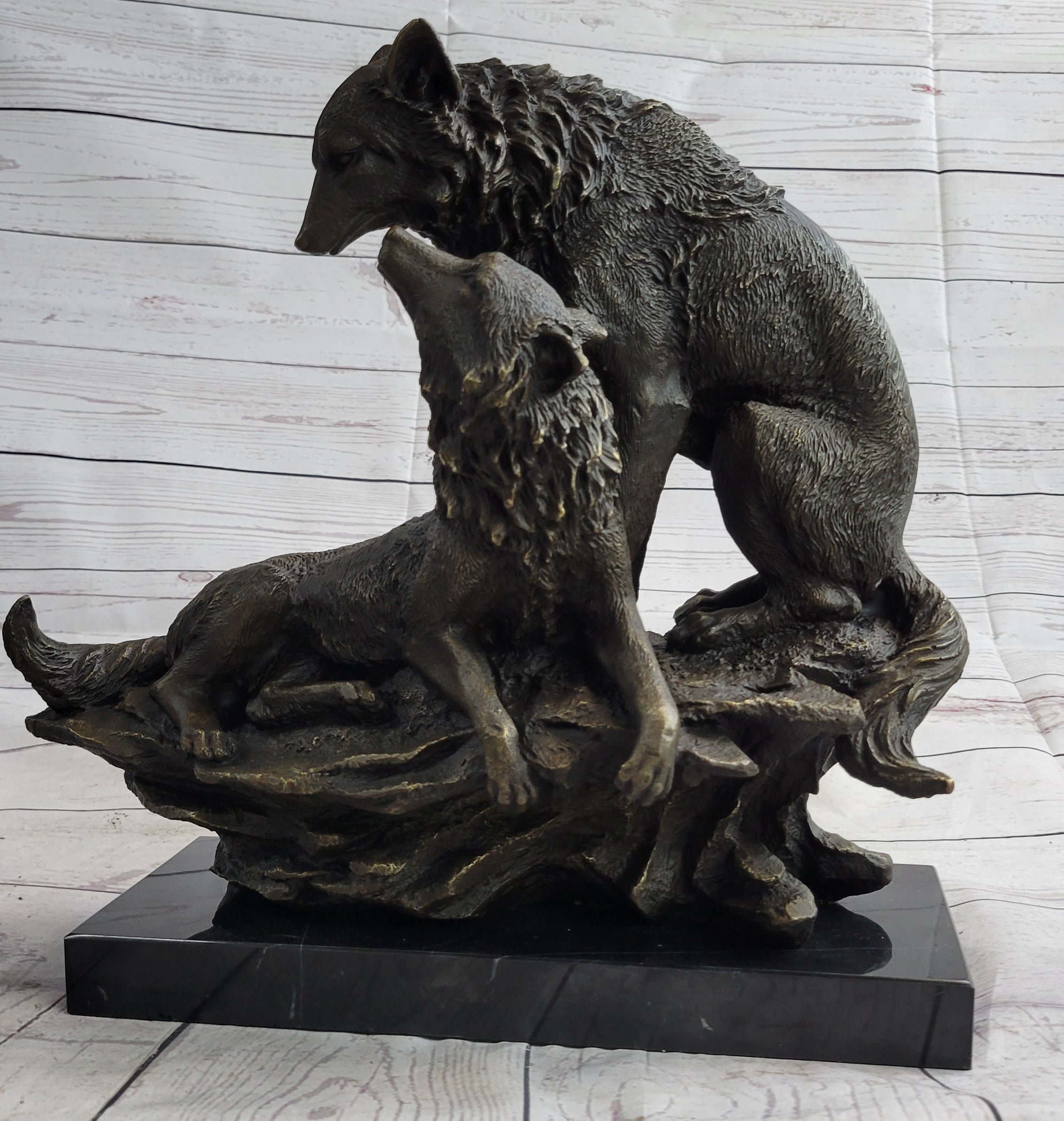 MAJESTIC BRONZE ART SCULPTURE STATUE WOLF CLASSIC BRONZE STATUE SIGNED