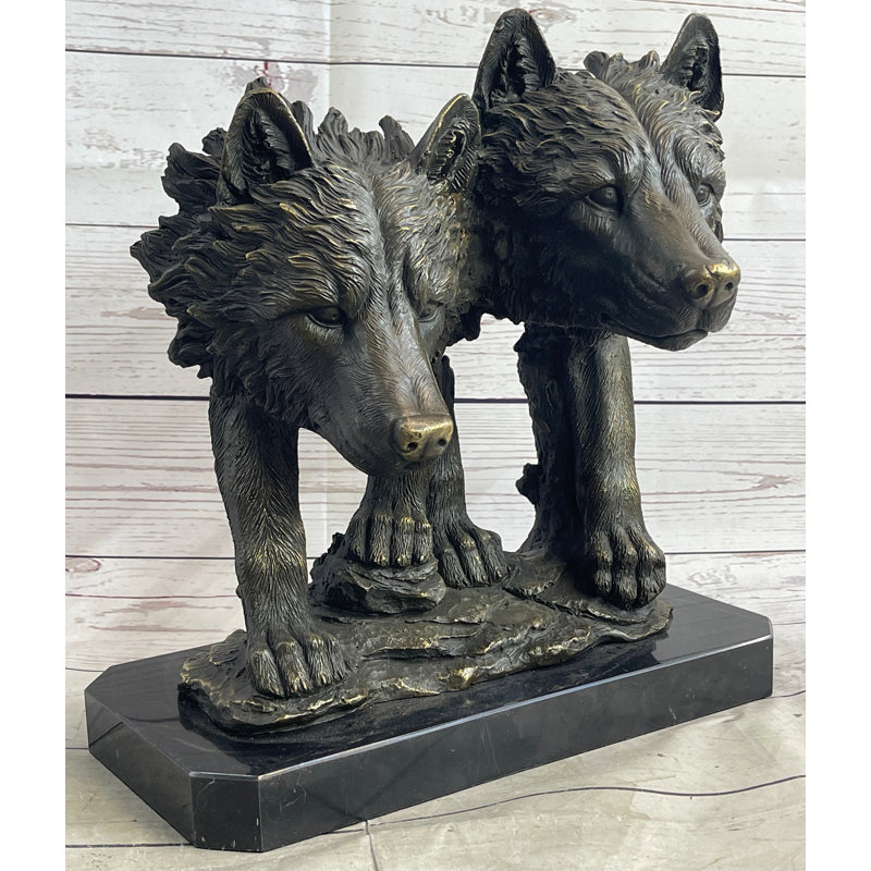 Loon Peak® Jotavious Dual Wolf Bust Sculpture Statue Two Wolves Bronze ...