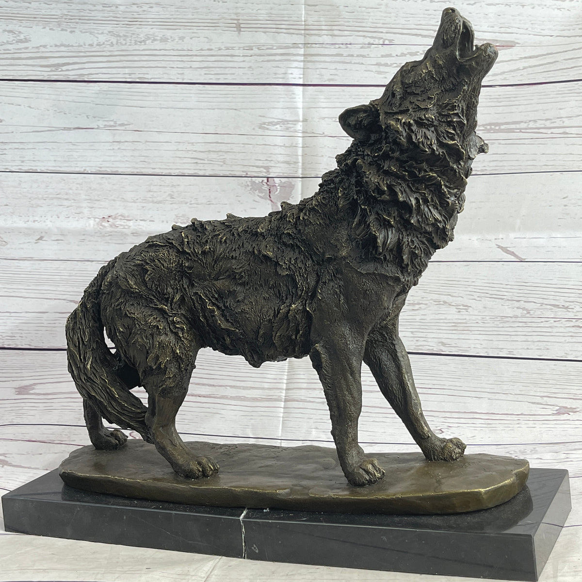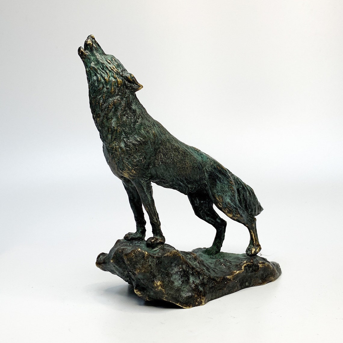 Bronze Wolf Sculpture, Howling Wolf Statue, Home Gift Idea, Office Gift ...