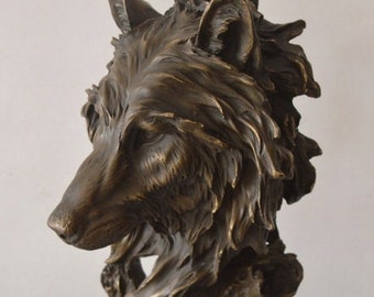 Bronze Wolf Sculpture- Bronze Statue Wolf on a Stand- Home Gift- Bronze ...