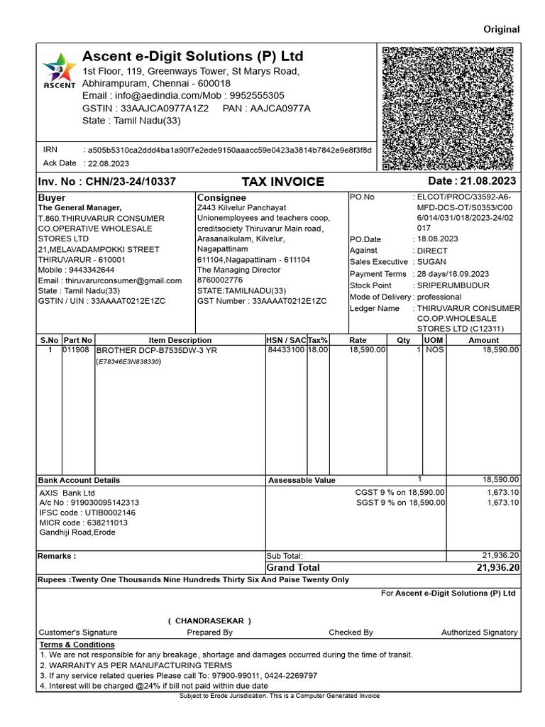 Tax Invoice for Brother Printer Sale | PDF | Government Finances | Taxes