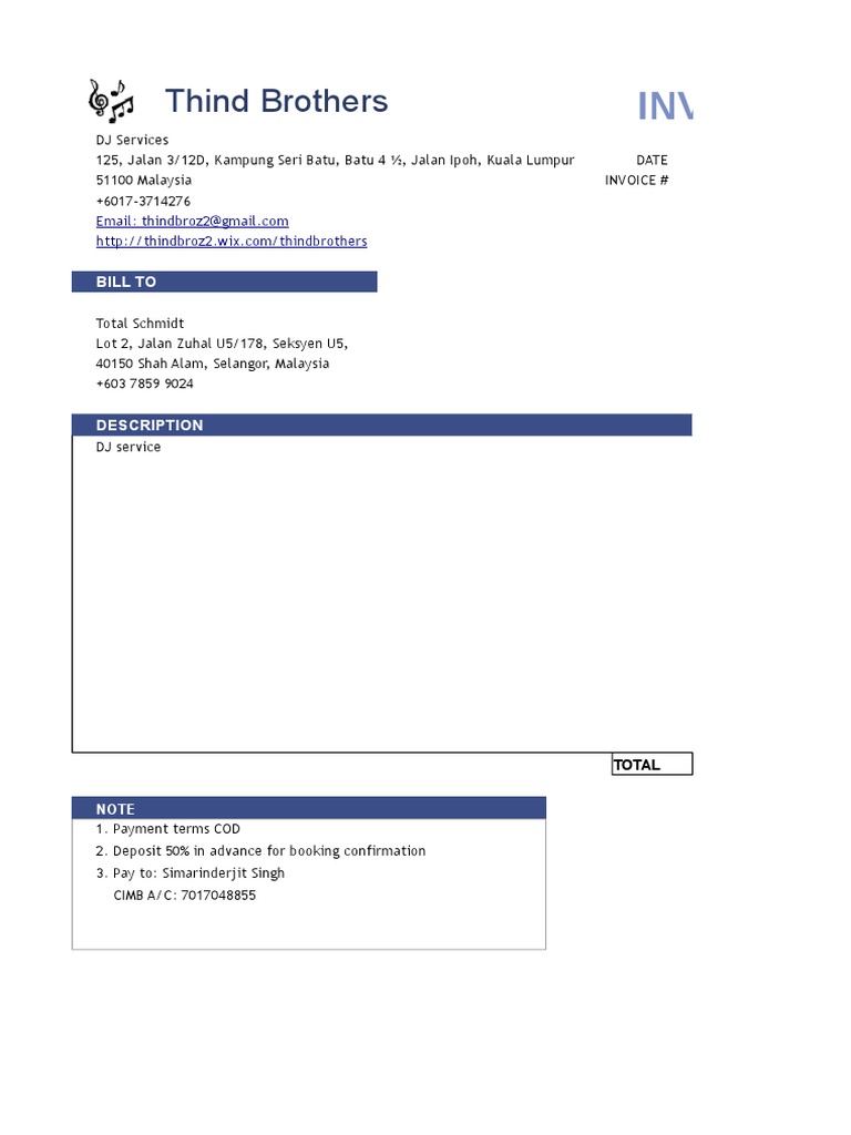 India Brother Zone Tax Invoice Template In Word And PDF Formats