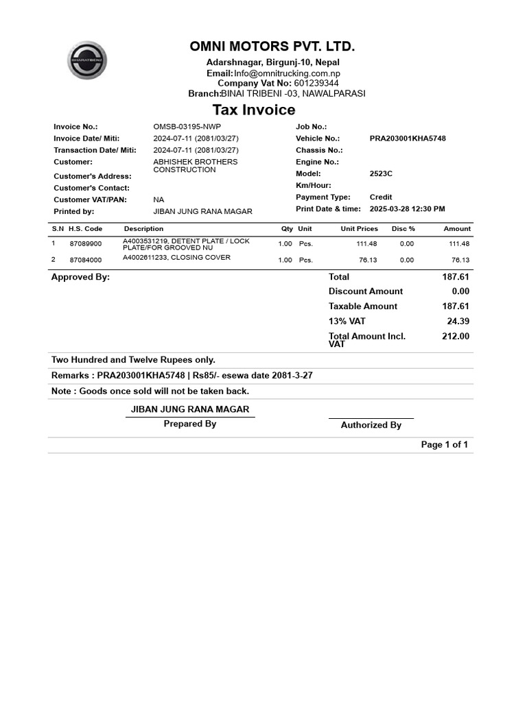 OMSB-03195-NWP - Abhishek Brother | PDF | Invoice | Value Added Tax
