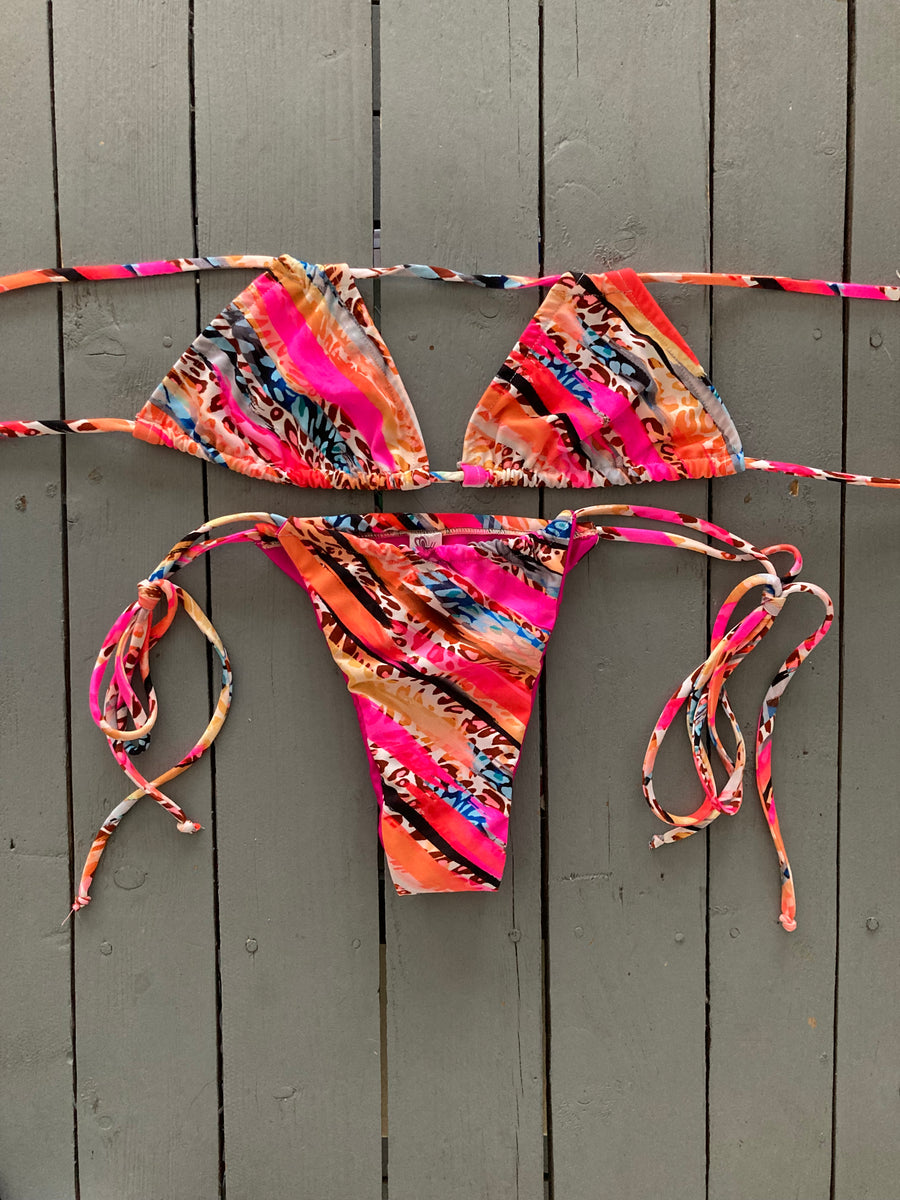 Tie String Triangle Brazilian Thong Bikini Swimsuits - Sunnybikinis