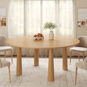 Lirago Round Light Brown Solid Wood 52 in. Kitchen Tables 4-Legs Dining ...