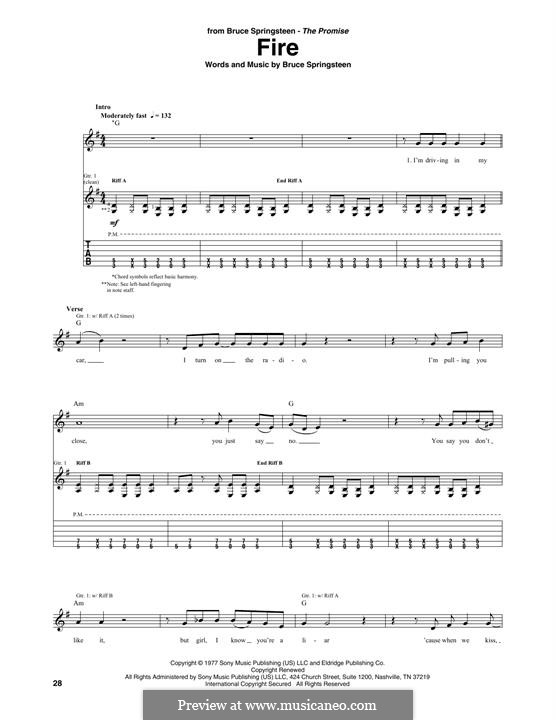 Fire par Bruce Springsteen Partitions pour Tablature Guitare sur Sheet ...
