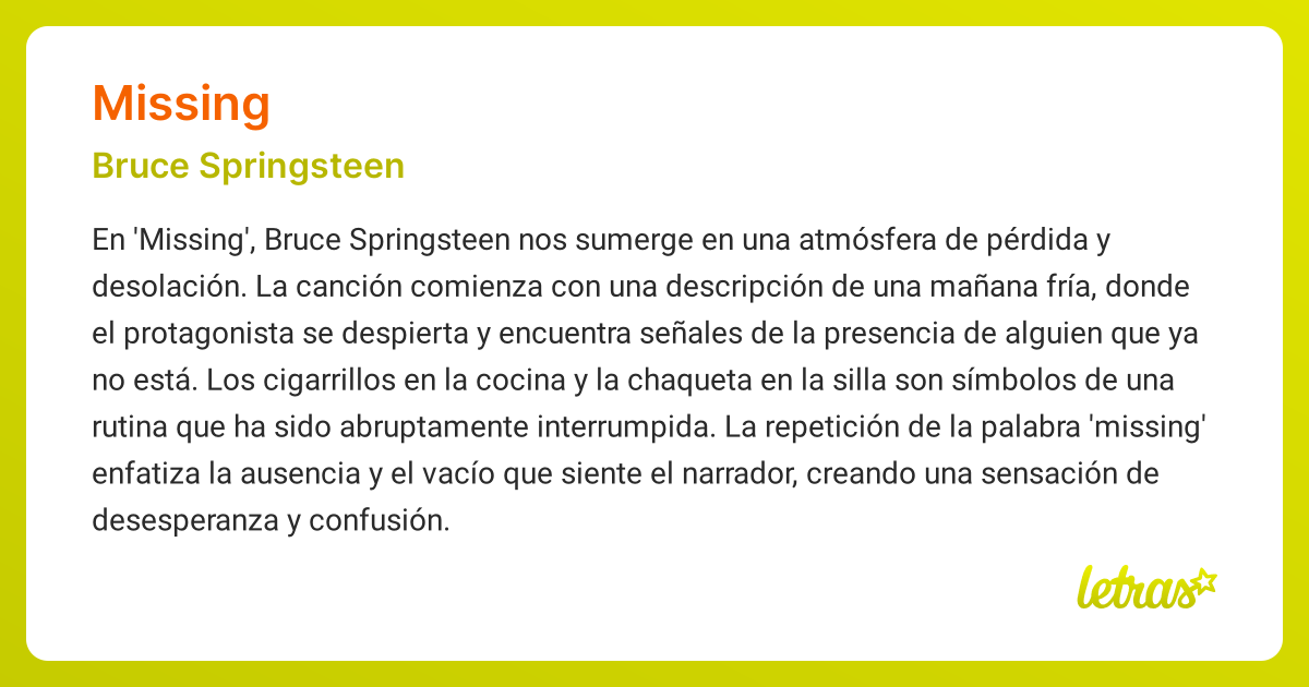 Significado de la canción MISSING (Bruce Springsteen) - LETRAS.COM