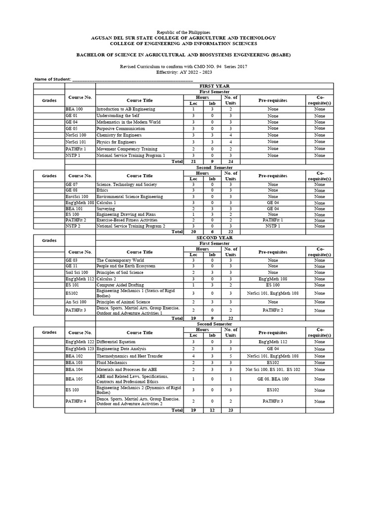 Bachelor of Science in Agricultural and Bio System Engineering (BSABE ...