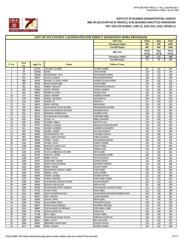 List of Successful Candidates For Direct Admission (Bsba Program) | PDF