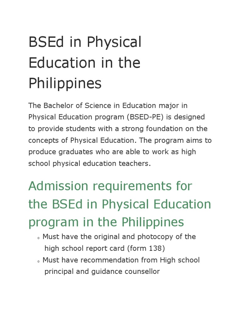 BSEd in Physical Education in The Philippines | PDF | Physical ...