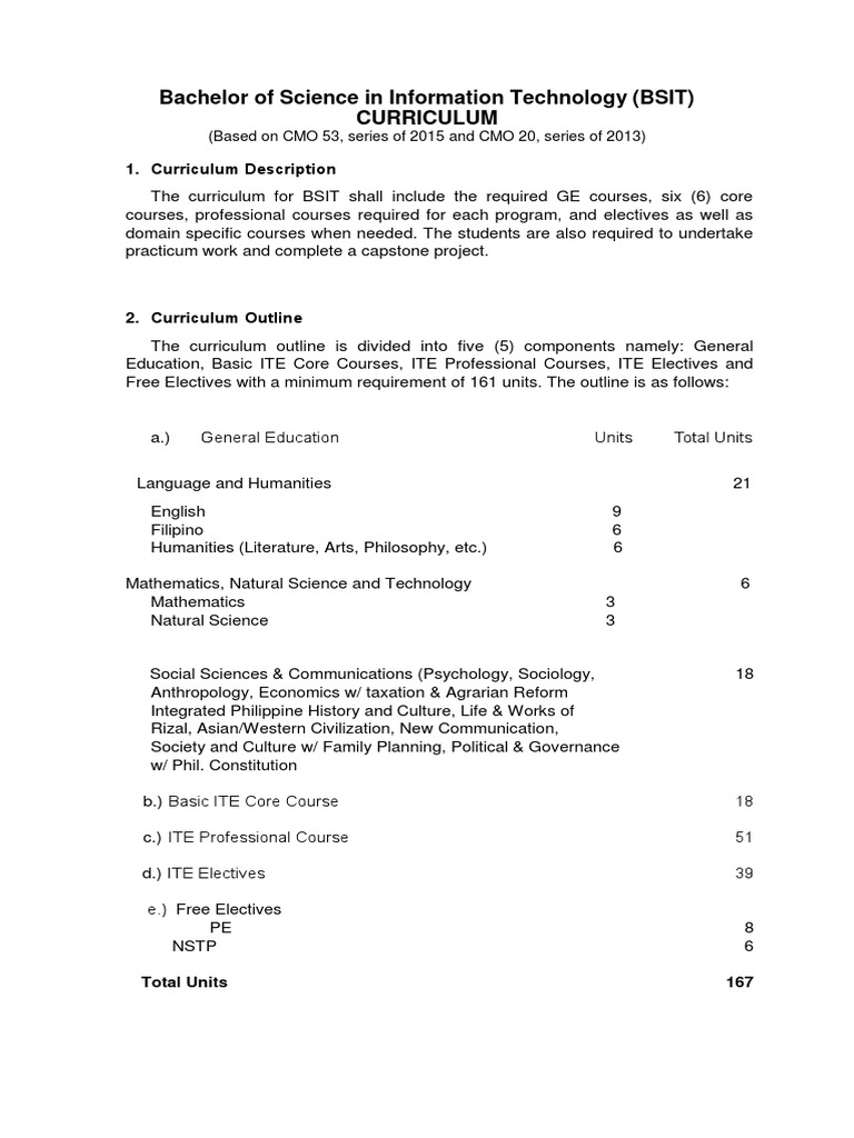 BSIT Curriculum Sample - COLLEGE OF ENGINEERING TECHNOLOGY SAMPLE ...