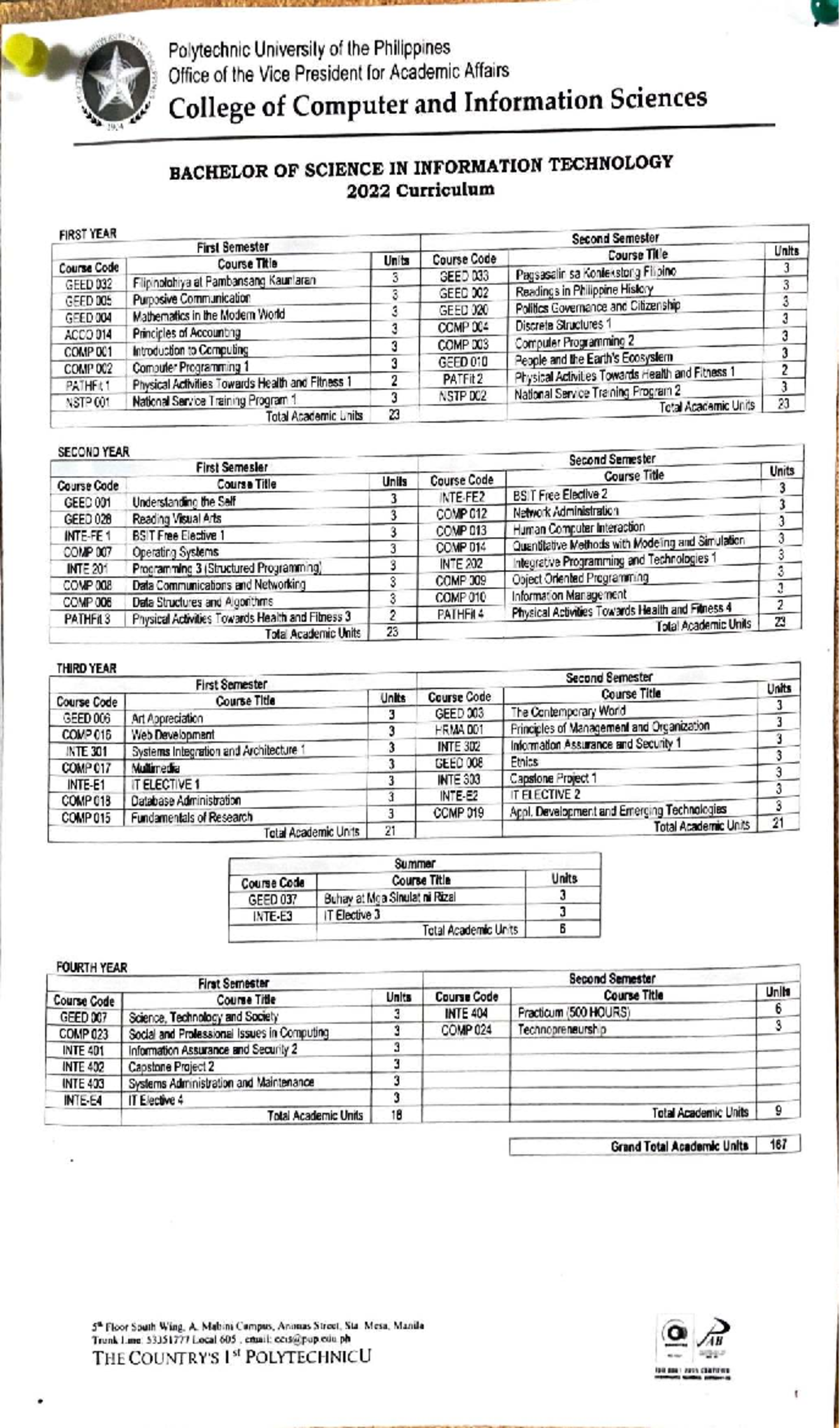 BSIT 2022 Curriculum Overview: First to Fourth Year Courses - Studocu