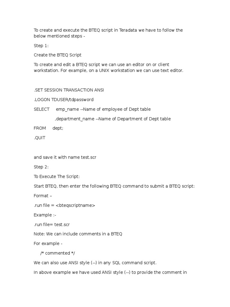Create and Execute BTEQ Script | PDF | Teaching Methods & Materials ...