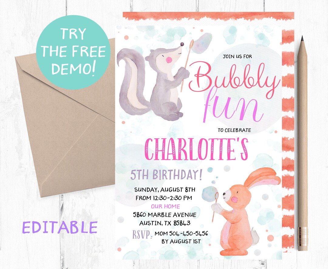 Bubbles Party Invitation Editable - Etsy
