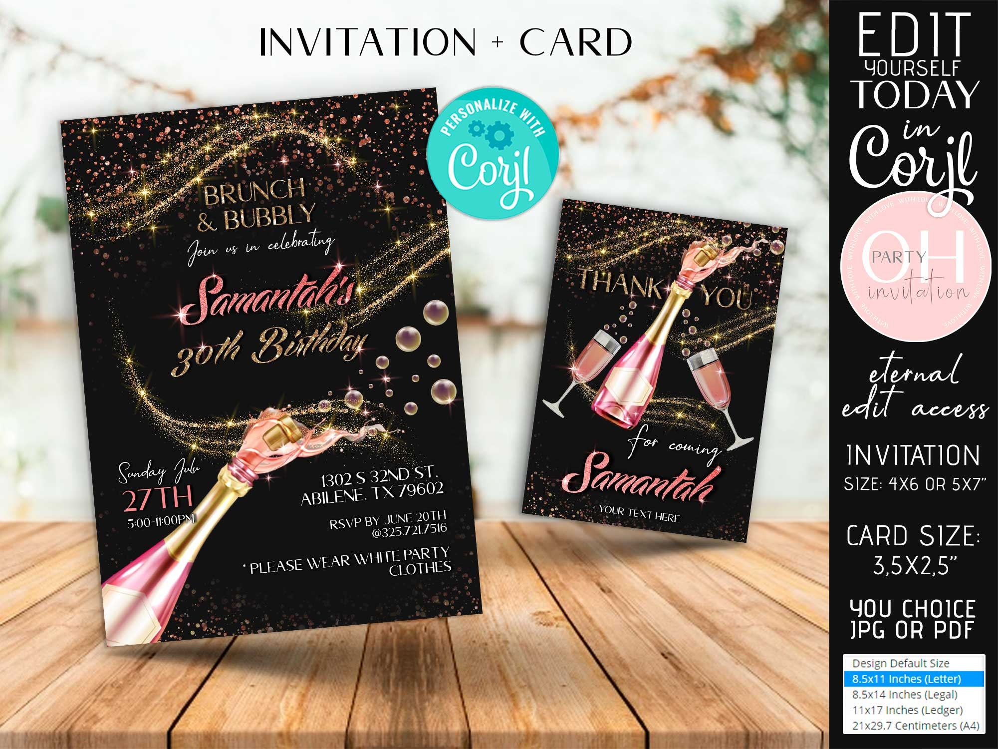 Editable Brunch and Bubbly Invitation Template Adult 30th 40th | Etsy