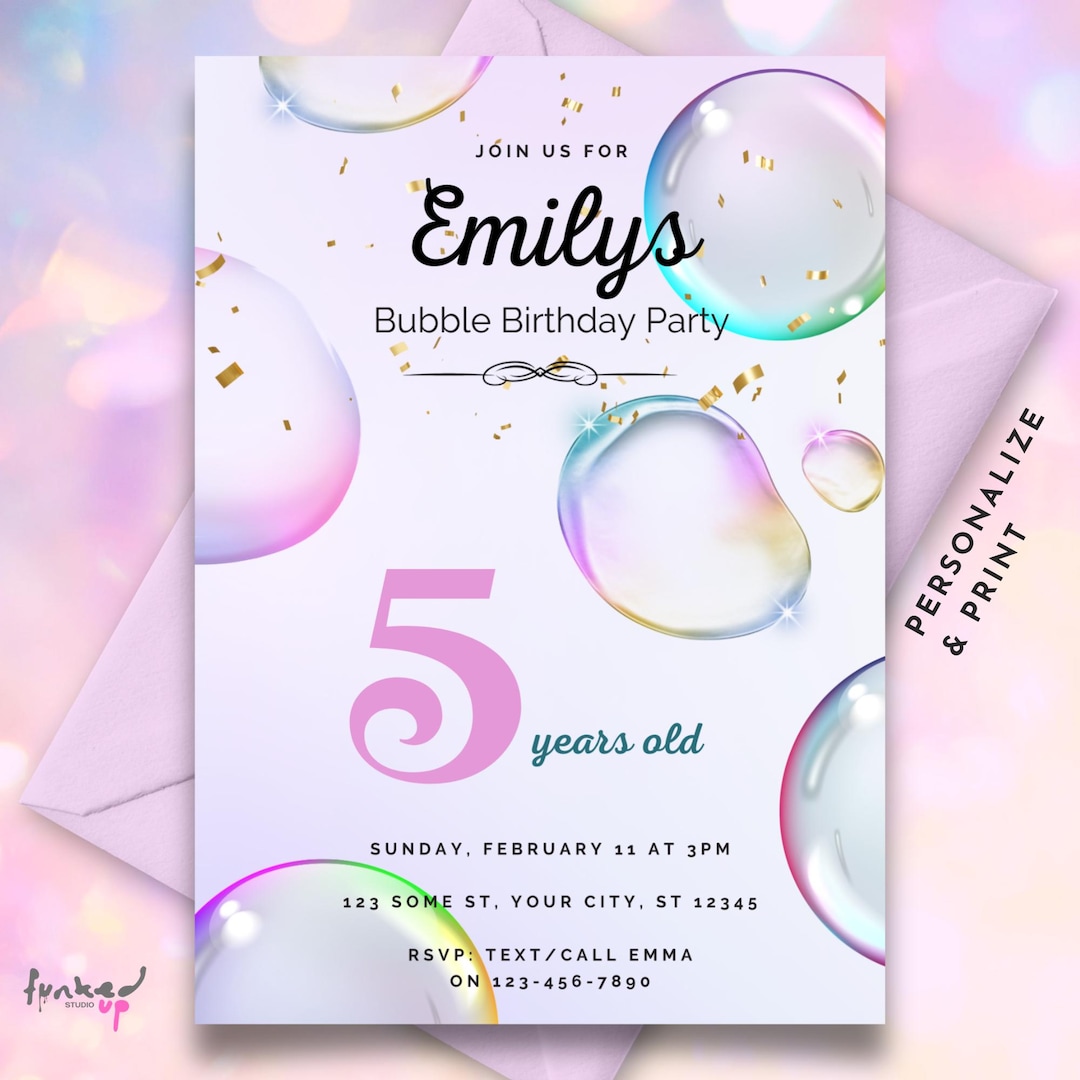Bubble Birthday Invitation Bubble Party Invitation Birthday Bubbles ...