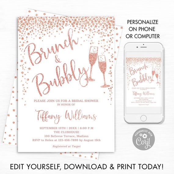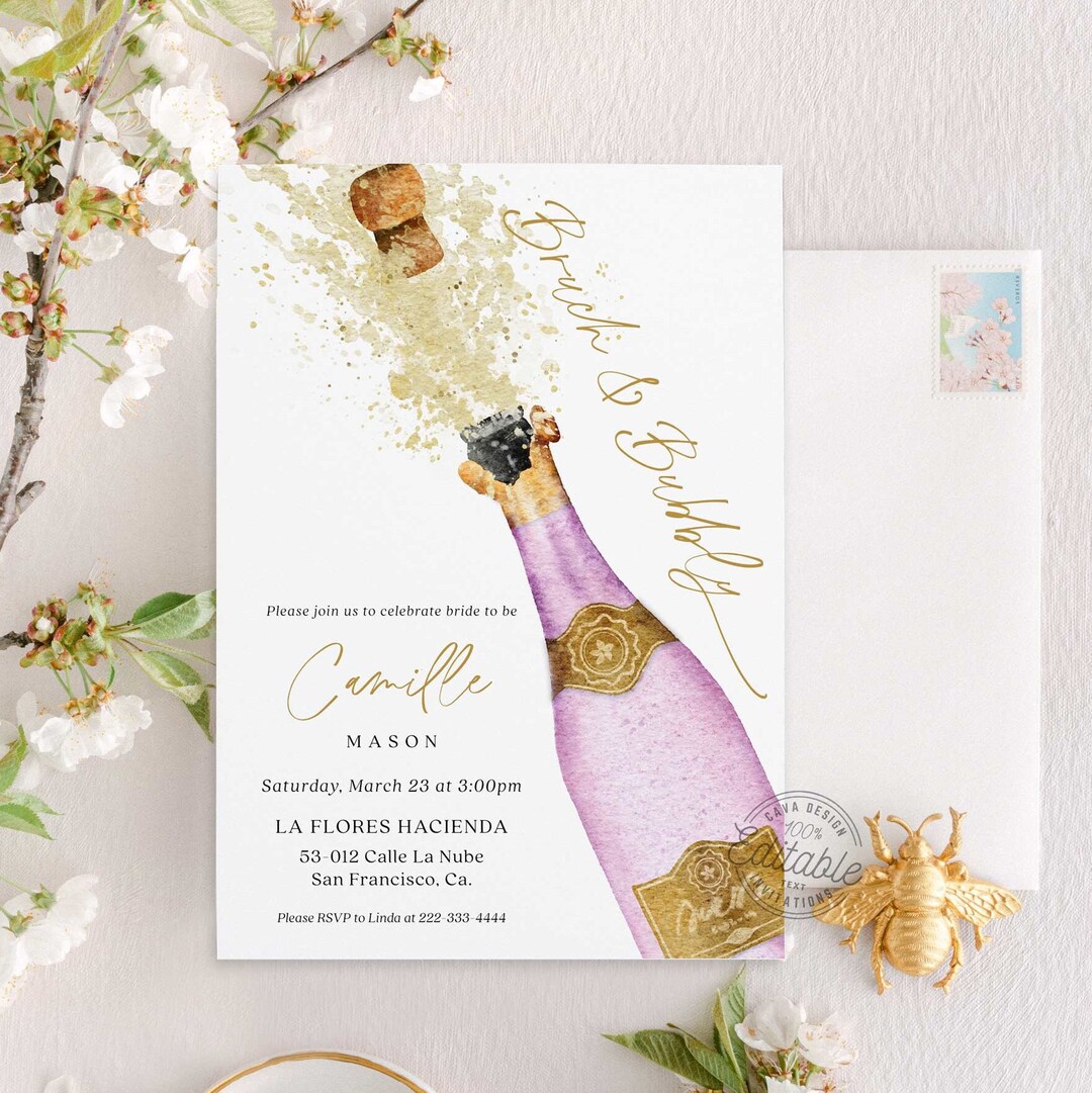Editable Brunch & Bubbly Invitation Template Printable Bridal - Etsy