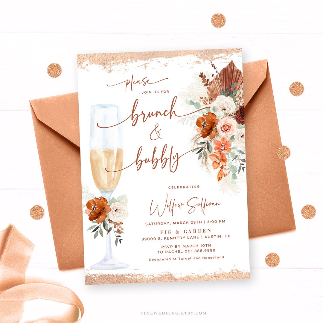 Brunch & Bubbly Invitation, Boho Bridal Brunch and Bubbly Invitation ...