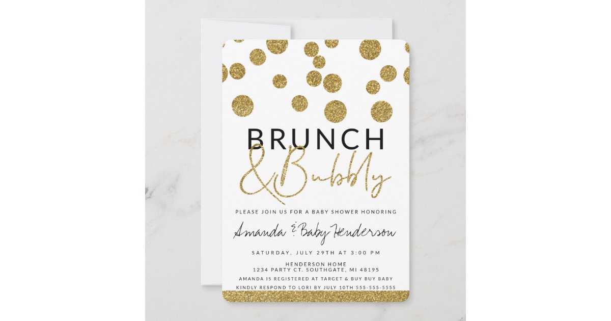 Gold Bubbles Brunch & Bubbly Invitation | Zazzle