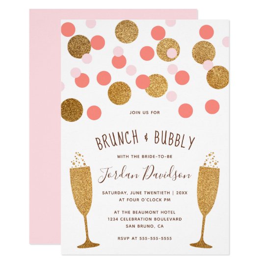 Pink & Gold Confetti Brunch & Bubbly Invitations | Zazzle.com