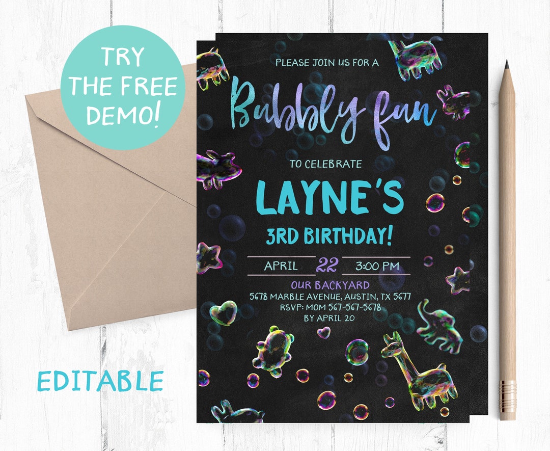 Bubble Party Birthday Invitation, EDITABLE Bubble Birthday Invite, Pop ...