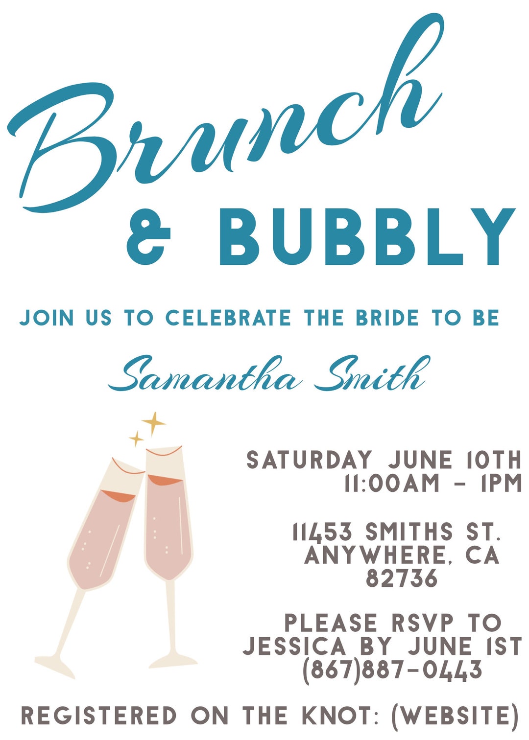 Brunch and Bubbly Invite, Bridal Shower Invite, Digital Invite, Wedding ...