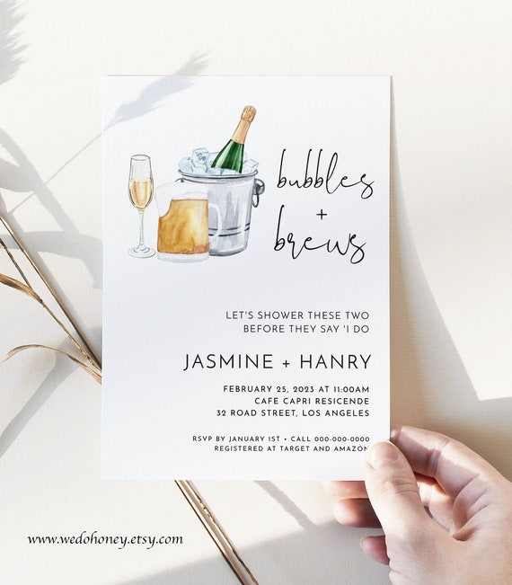 Bubbles and Brews Couples Shower Invitation, Brews and Bubbly Invite ...