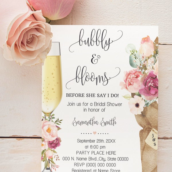 Printable Editable Brunch and Bubbly Invite, Bridal Shower or ...