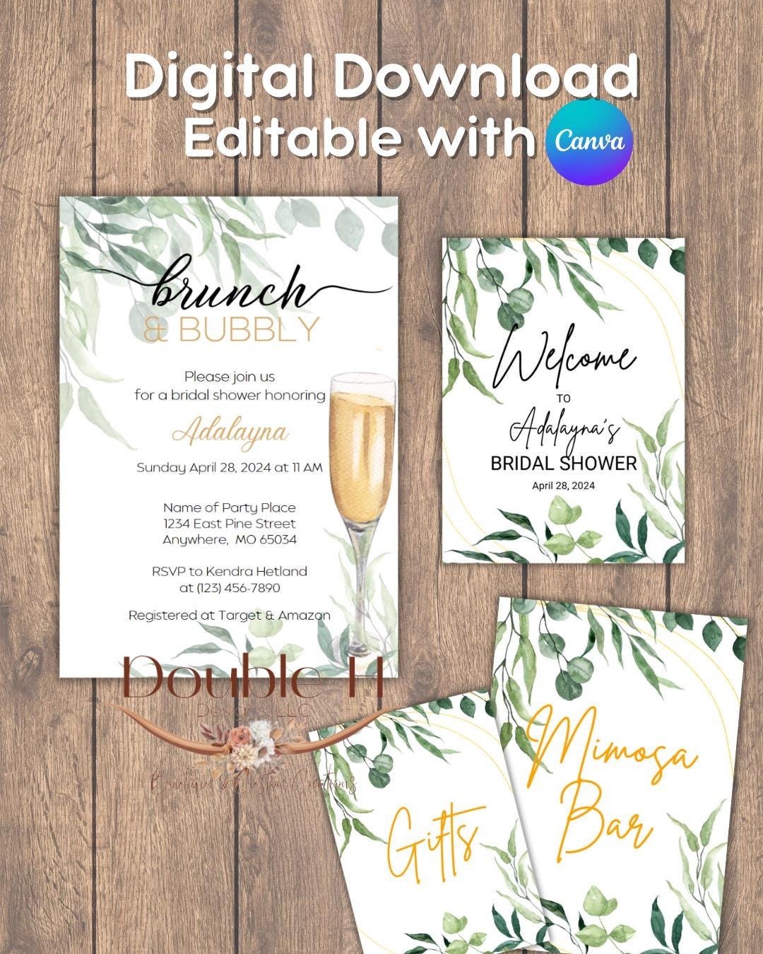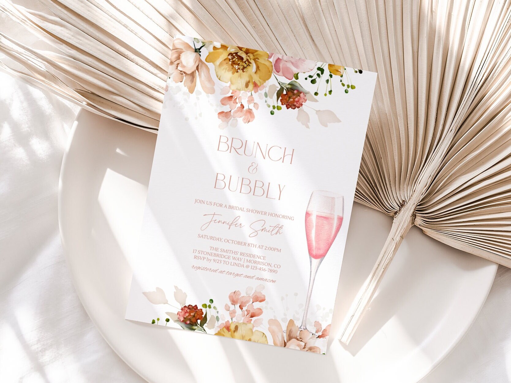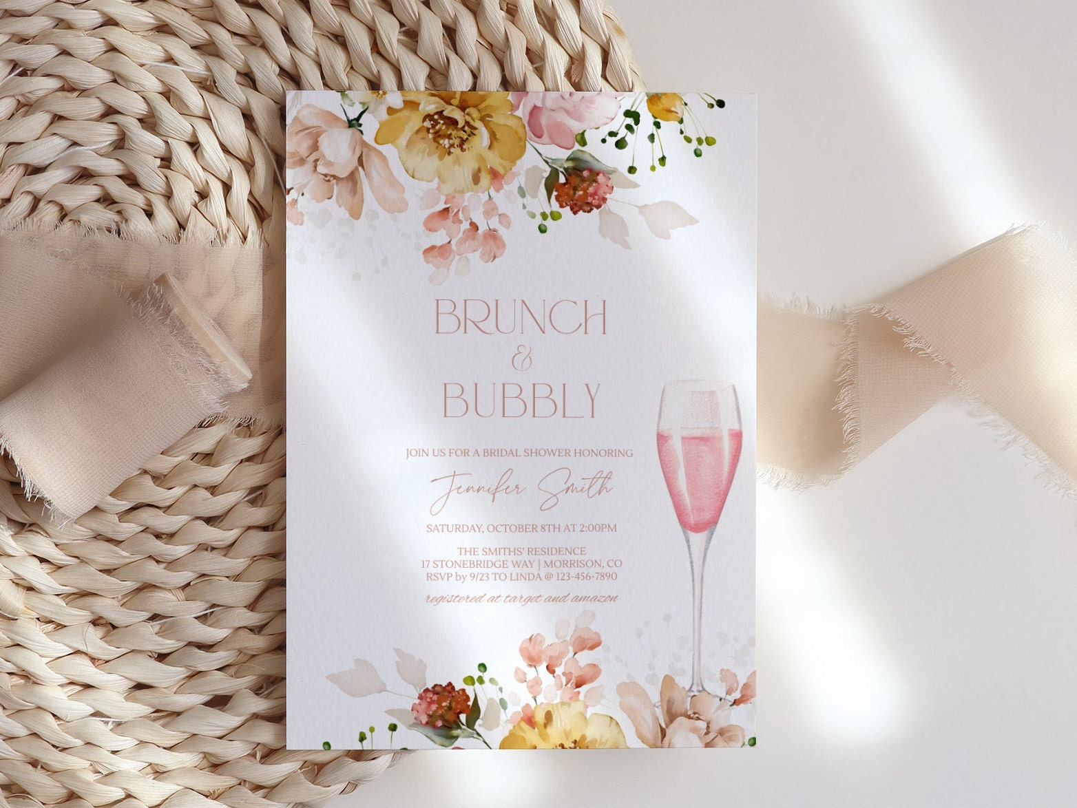 Editable Brunch & Bubbly Invitation Template Printable Bridal - Etsy