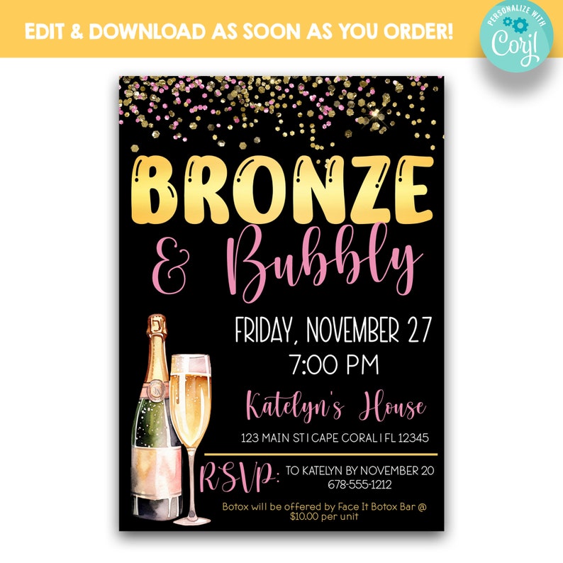 EDITABLE Spray Tan Party Invitation | Bronze & Bubbly Invite | Girls ...