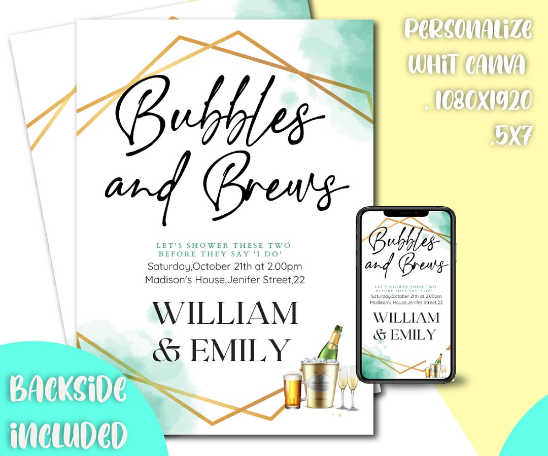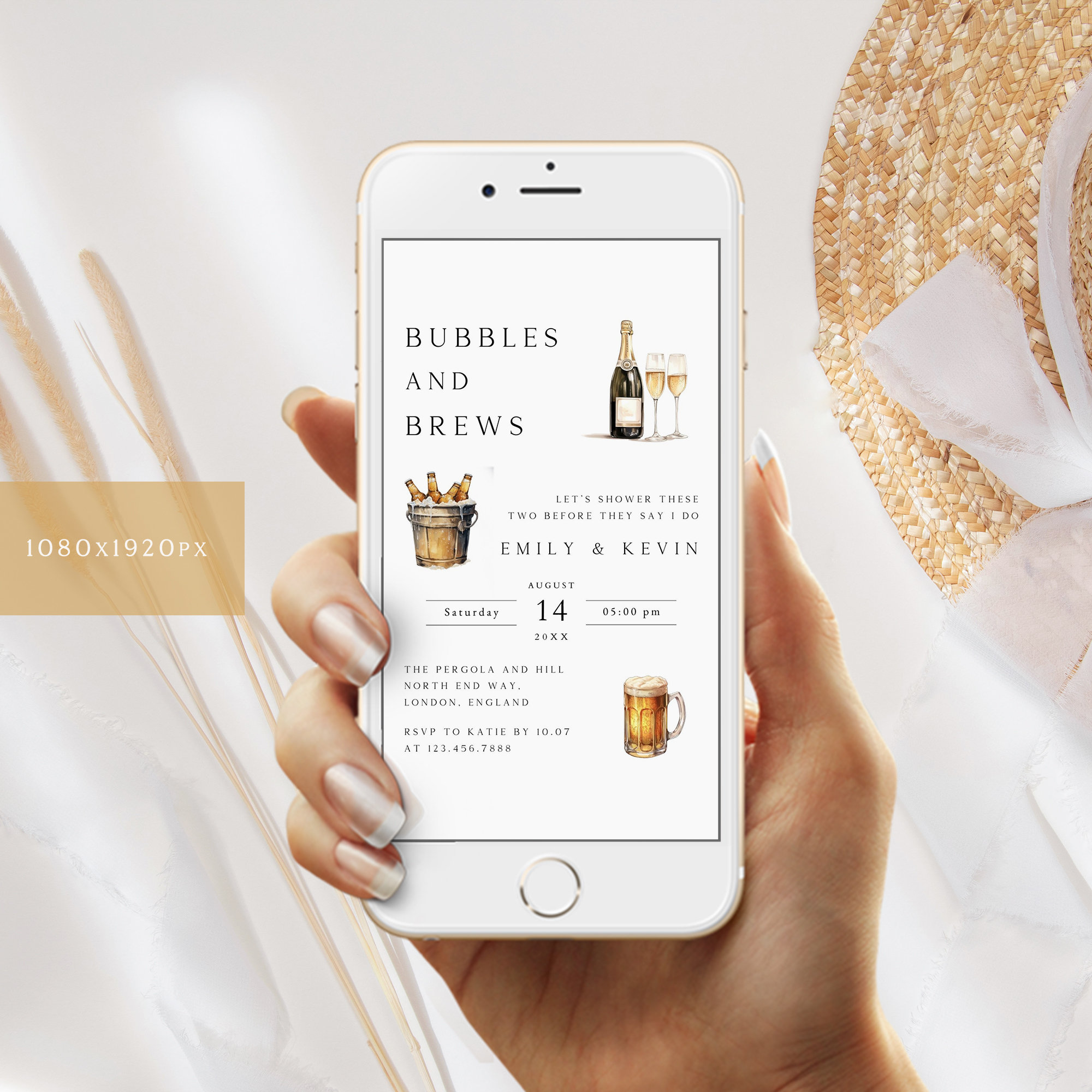 Editable Bubbles and Brews Shower Invitation, Brews and Bubbly Bridal ...