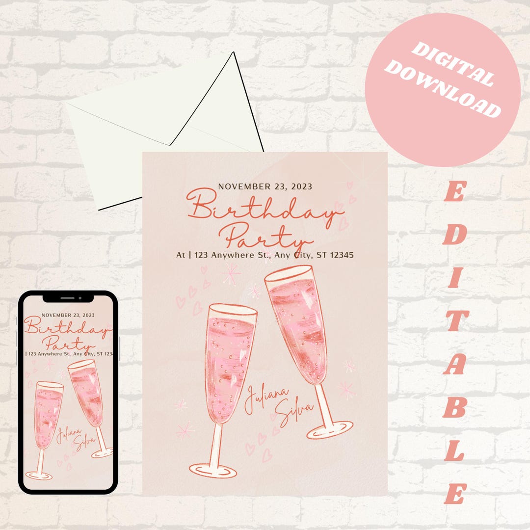 Editable Brunch and Bubbly Invitation Template Adult 30th 40th | Etsy
