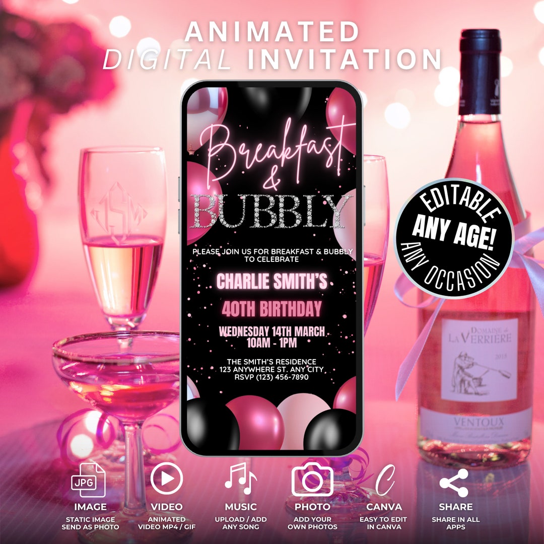 Breakfast & Bubbly Invite, Elegant Birthday Breakfast Celebration ...