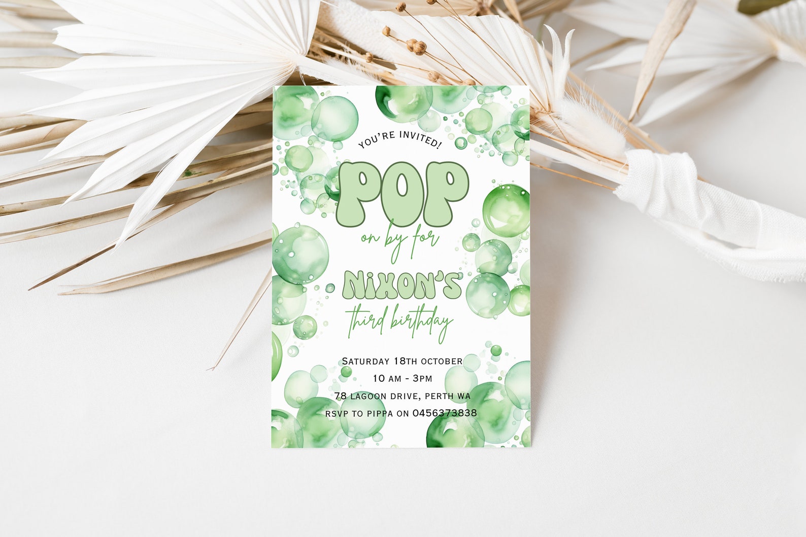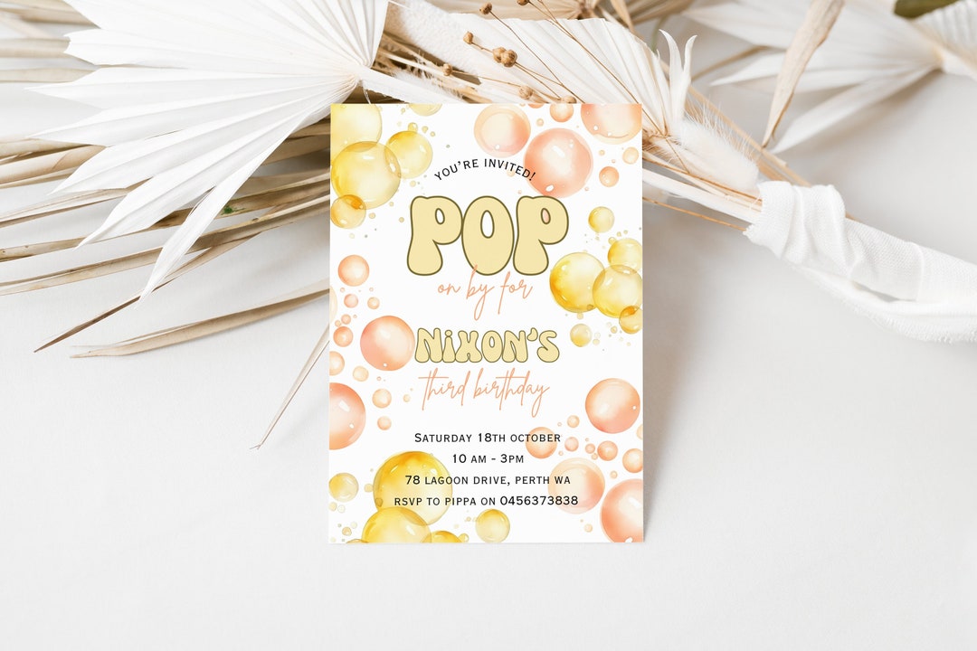 EDITABLE Bubble Birthday Invitation, Bubble Party Invite, Pop on Over ...