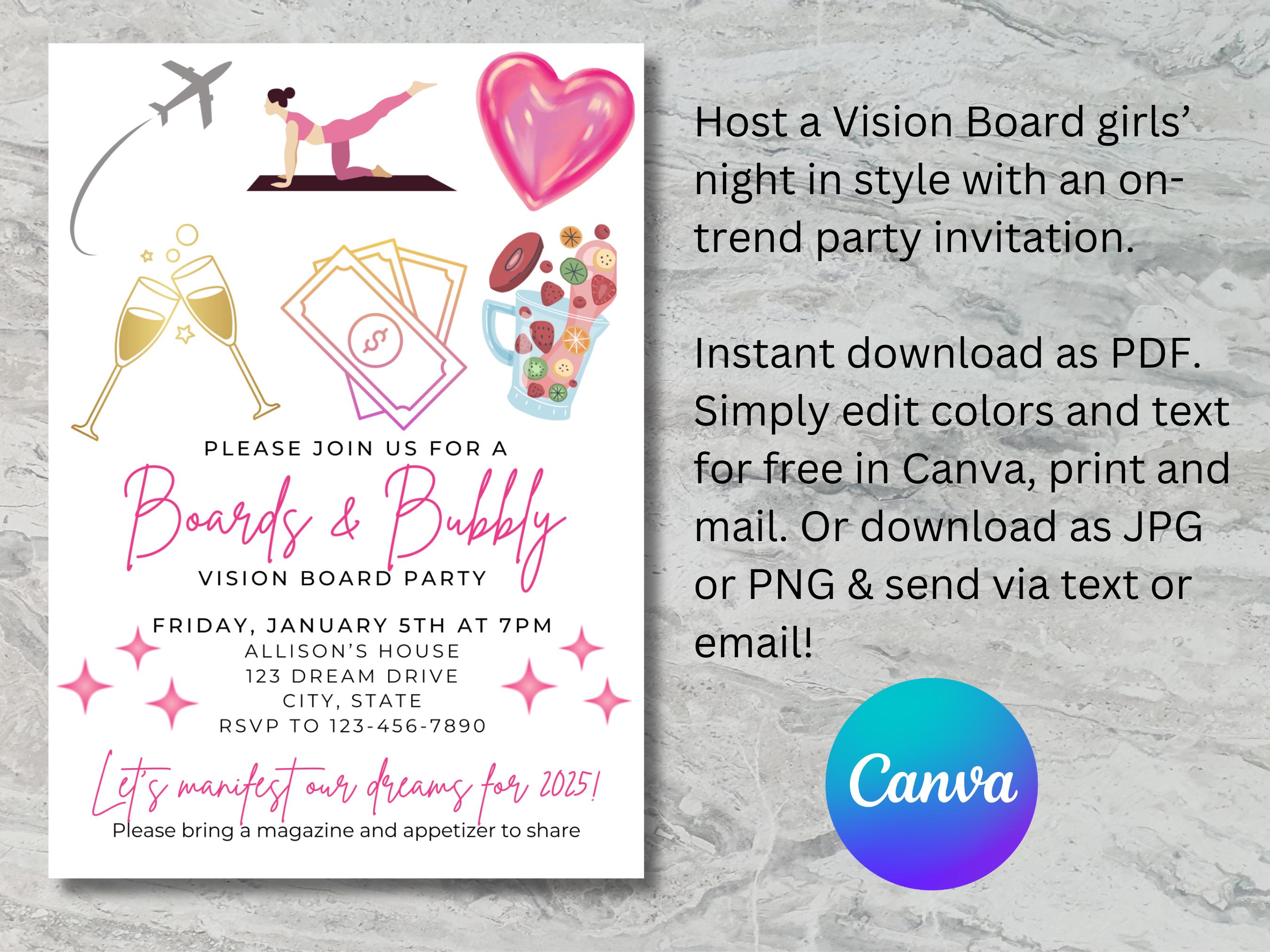 Boards and Bubbly Invite, Vision Board Party Invitation, Manifestation ...