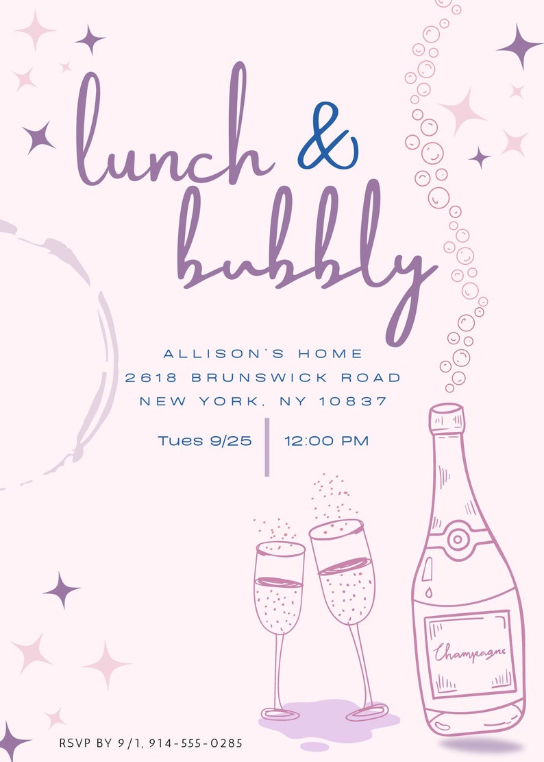 Pink Sparkly Lunch & Bubbly Invite - Etsy