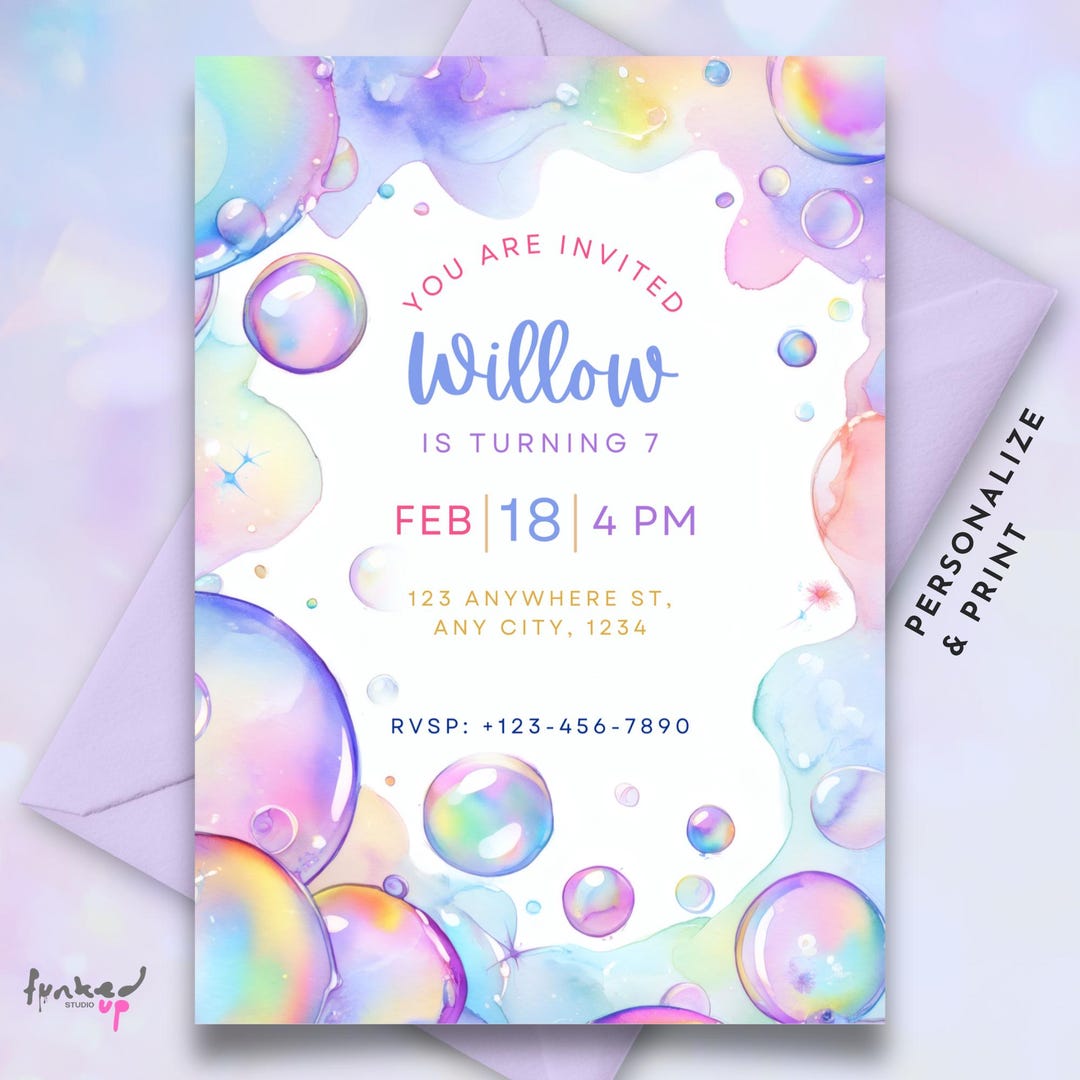 Bubble Birthday Party Invitation Girl: Editable Bubbly Pop (digital ...