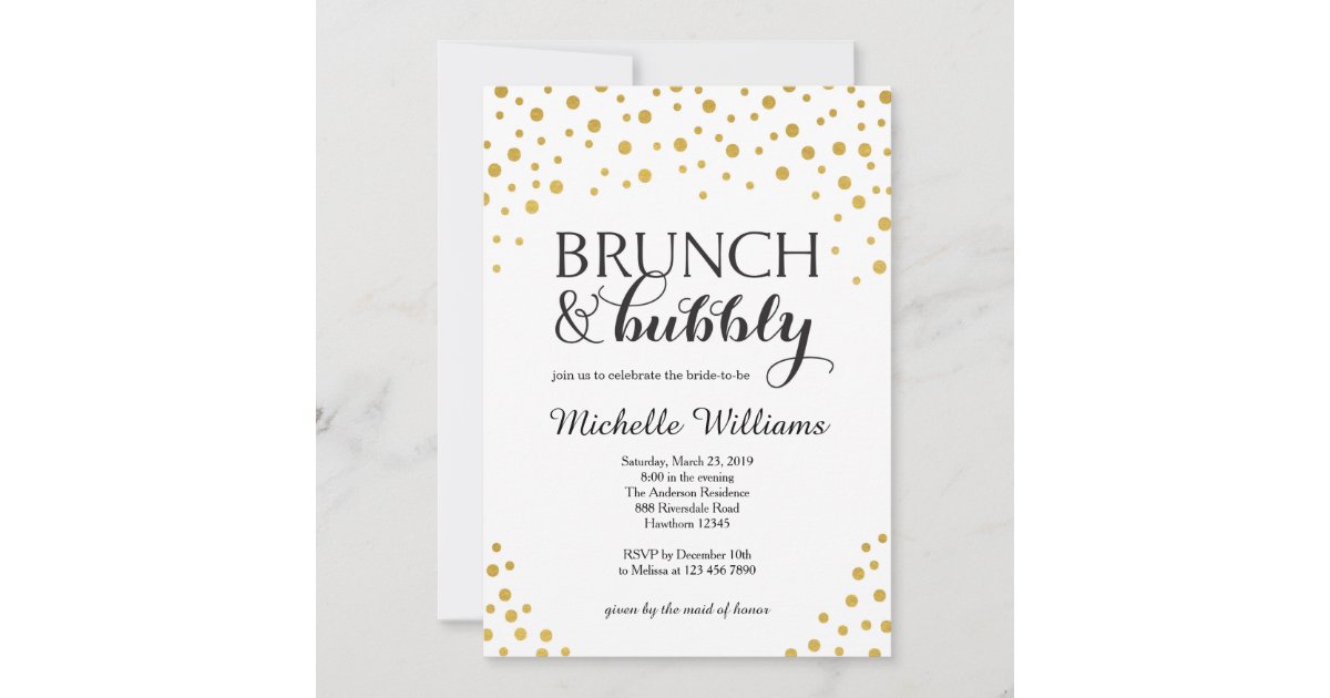 Gold Bubbles Brunch & Bubbly Invitation | Zazzle