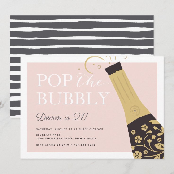 Pop the Bubbly | Birthday Party Invitation | Zazzle