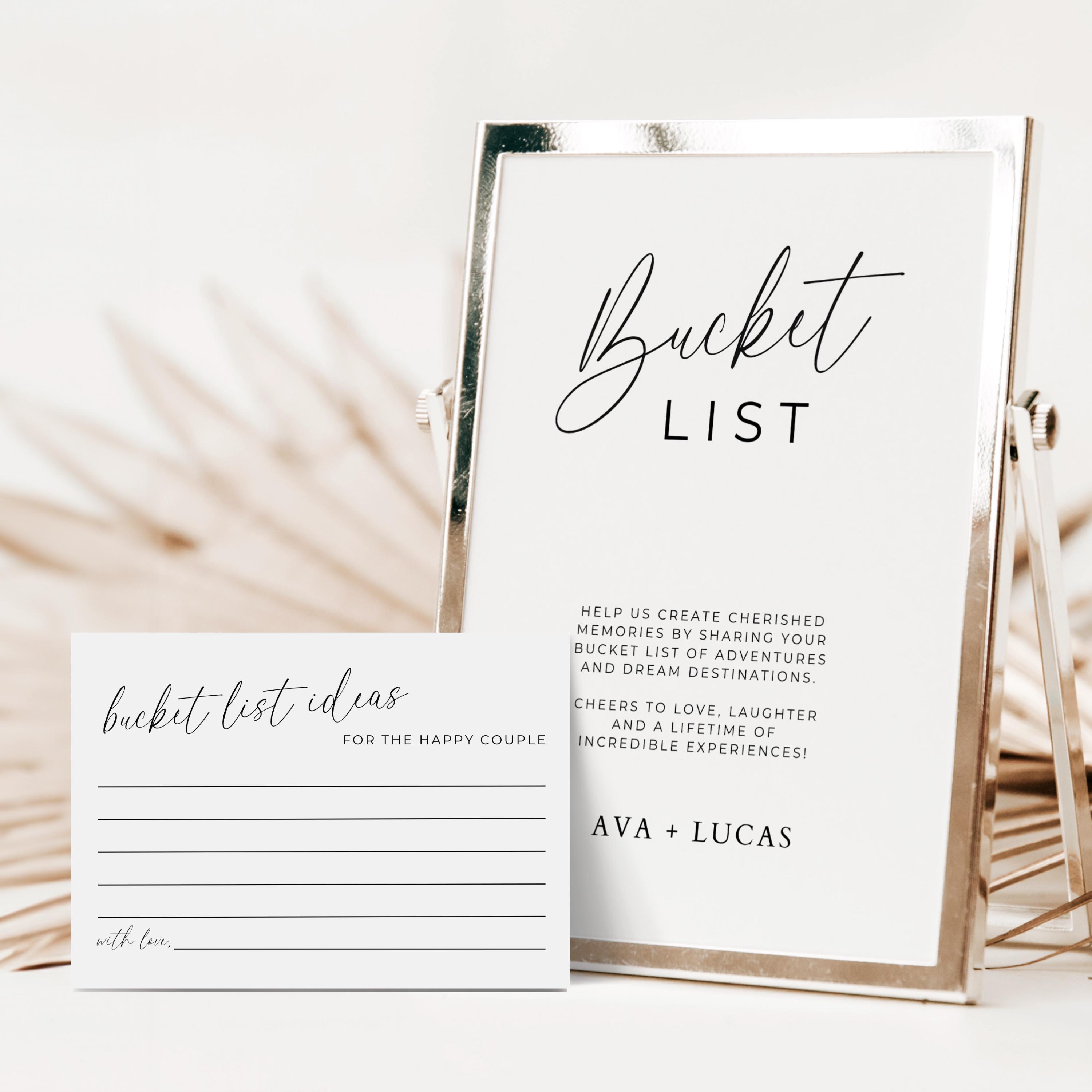 Bucket List Cards and Sign Template, Minimalist Bucket List Note and ...