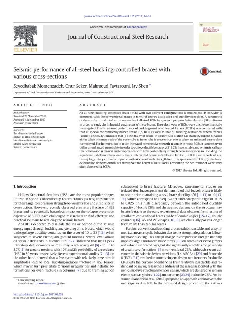 Seismic Performance of All Steel Bucklin | PDF | Buckling | Deformation ...