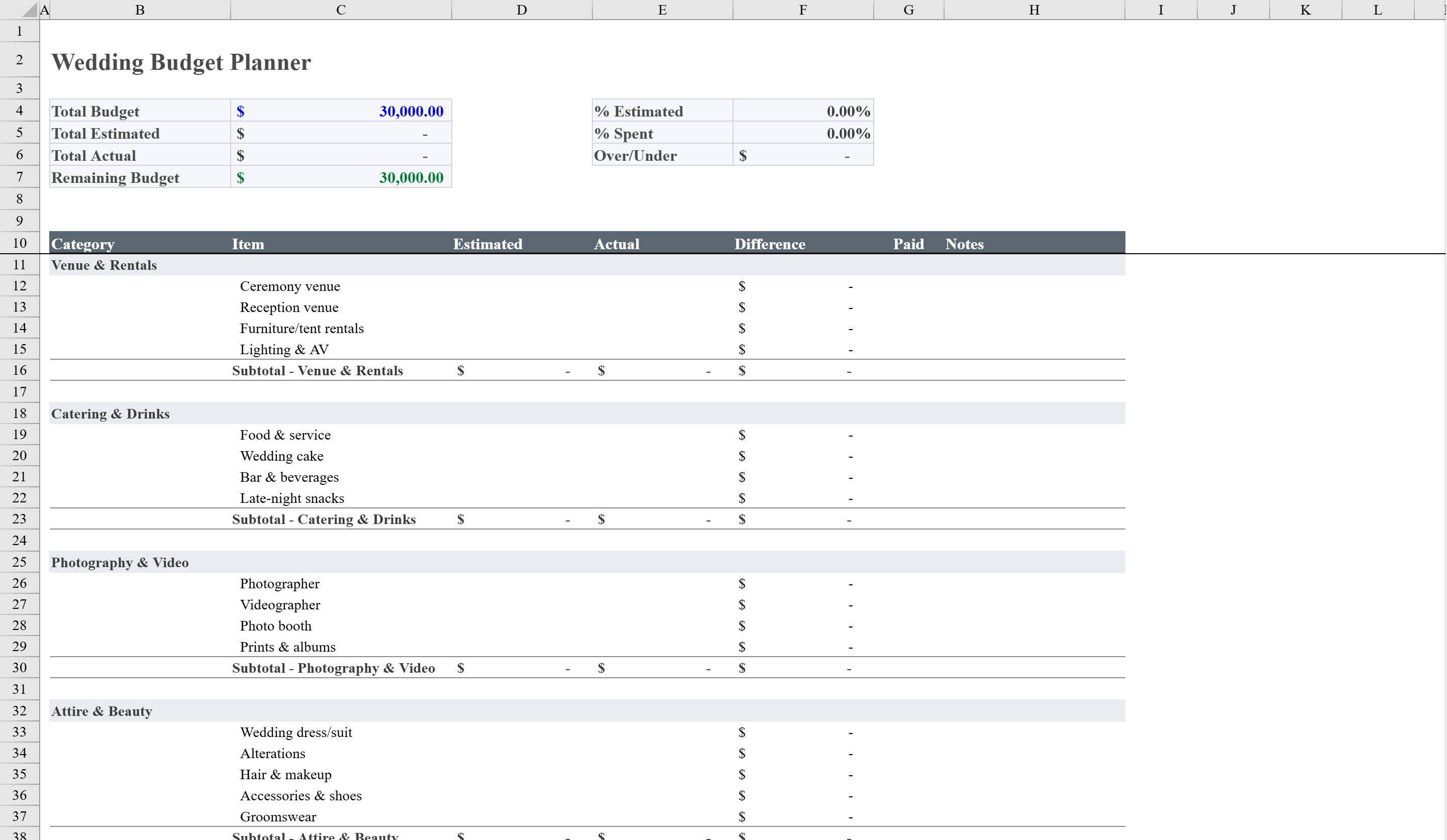 Free Wedding Budget Template for Excel | Shortcut
