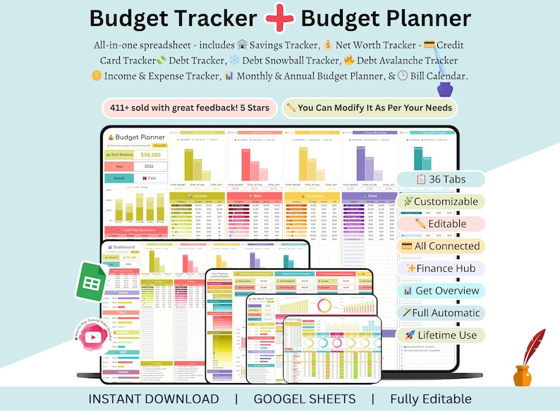 Budget Planner - Digital Budget Planner - Budget Tracker - Savings ...