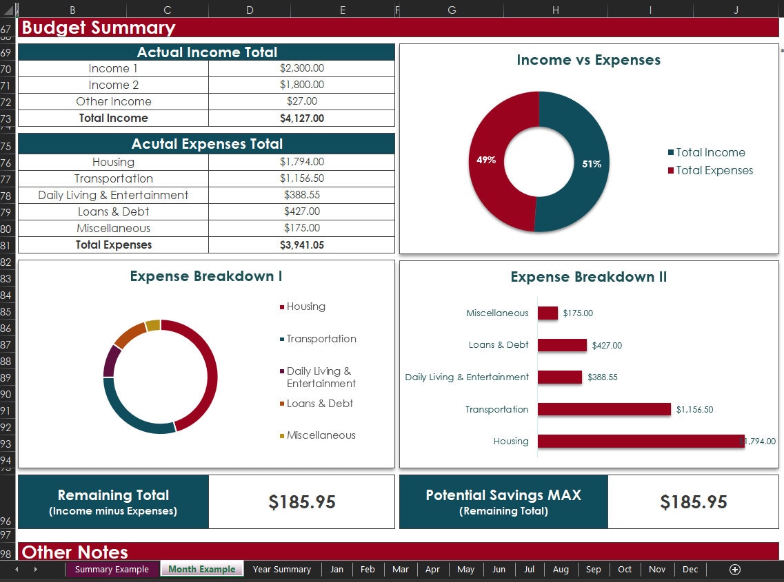 Personal Budget Excel Template - Month & Year Summaries 3 - Etsy