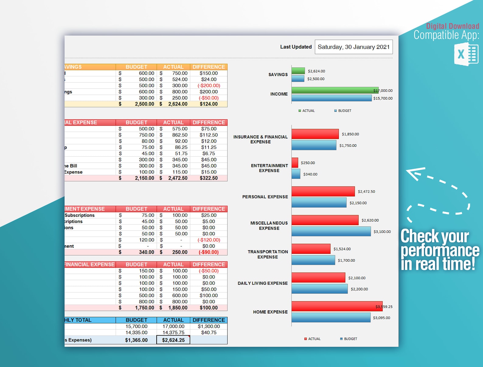 Monthly Budget Spreadsheet for Microsoft Excel. Be in control of your ...