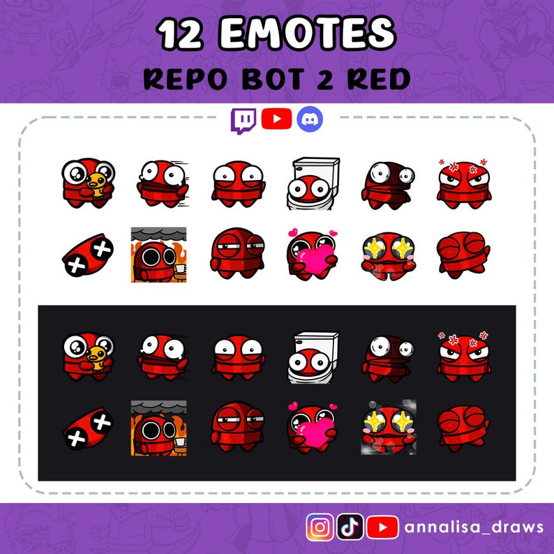 REPO BOT 2 RED Emotes Set | Twitch | Youtube | Discord | Streaming ...