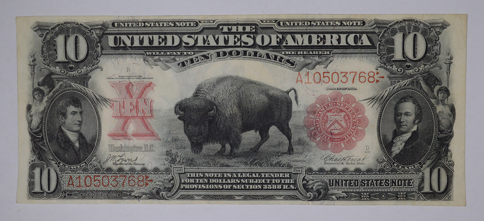 1901 $10 Ten Dollars Legal Tender United States Note Red Seal Bison ...