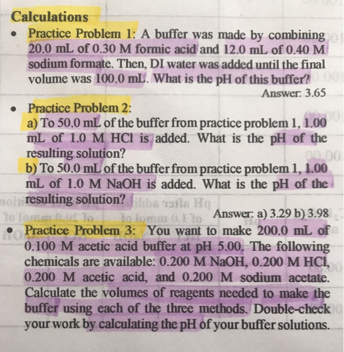 Buffer Practice Problems Biochemistry at Lindsay Johnson blog